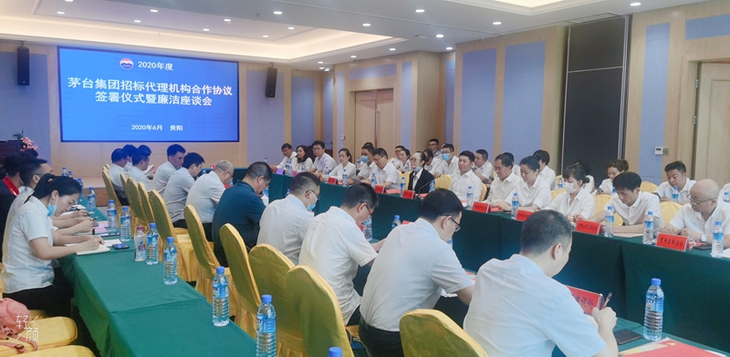 2020年6月19日,茅臺集團(tuán)招標(biāo)代理機(jī)構(gòu)合作協(xié)議簽署儀式暨廉潔座談會在貴州省貴陽市觀山湖區(qū)畢節(jié)路58號聯(lián)合廣場4號樓維也納國際酒店召開。會議由茅臺集團(tuán)公司黨委委員、總法律顧問段建樺主持。茅臺集團(tuán)公司紀(jì)委、集中采購中心等單位負(fù)責(zé)人,貴州省招標(biāo)有限公司、貴州鵬業(yè)工程建設(shè)咨詢事務(wù)有限責(zé)任公司等16家招標(biāo)代理機(jī)構(gòu)代表參會。貴州鵬業(yè)工程建設(shè)咨詢事務(wù)有限責(zé)任公司董事長魏澤黔作為代表參加了此次會議。